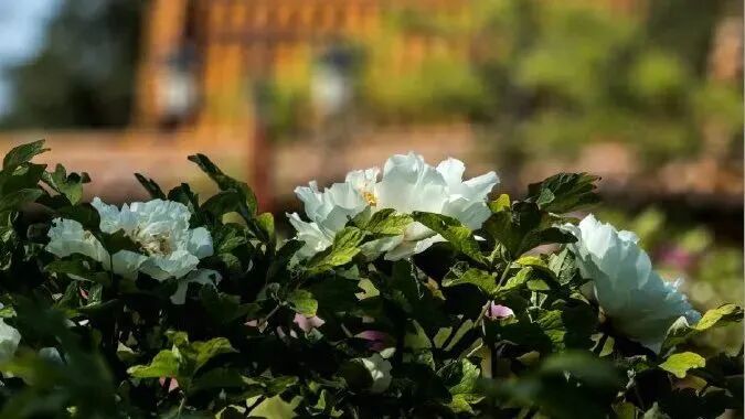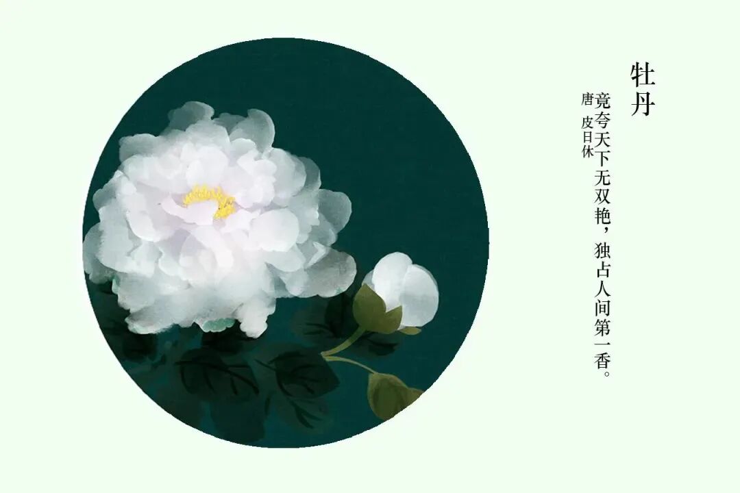 花单生枝顶,花瓣玫瑰色、红紫色、粉红色至白色,通常变异很大,倒卵形,顶端呈不规则的波状,有“花中之王”、“国色天香”之称。