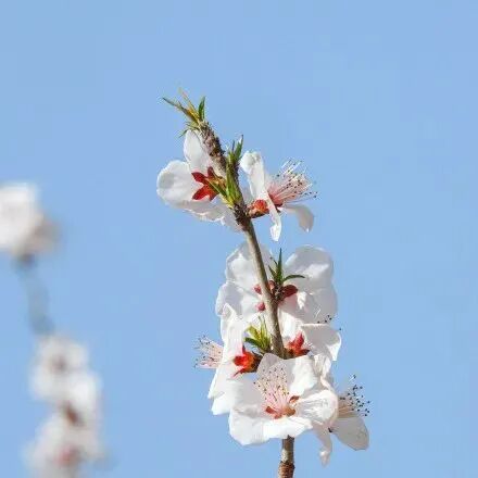 属李亚科植物,杏花单生,先叶开放,花瓣白色或稍带红晕。