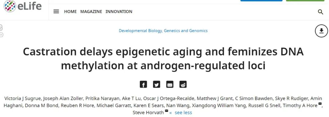 雄性激素能加速衰老——这一结果给阉割、雄性激素和DNA老化的性别差异之间提供了明确的联系。对雄激素敏感的DNA老化模式,也为雄性哺乳动物衰老速度更快提供了新的解释。目前为止该团队已经研究了200多个物种,由此发现哺乳动物的衰老都具有这一惊人的共性。
