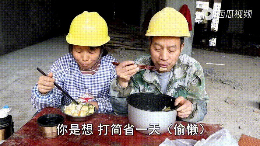 西瓜视频上有个创作人叫“农民工川哥”,有17万粉丝,他平时最经常拍的,是和老婆在工地上一起吃午饭。