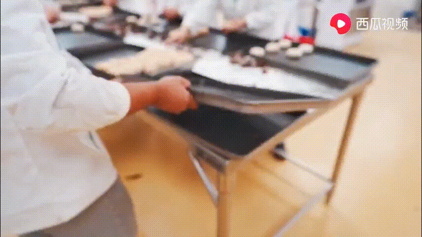 他带粉丝参观亚洲最大的航空餐食生产基地,看工作人员全副武装、无菌化操作烤出香喷喷的豆沙包。