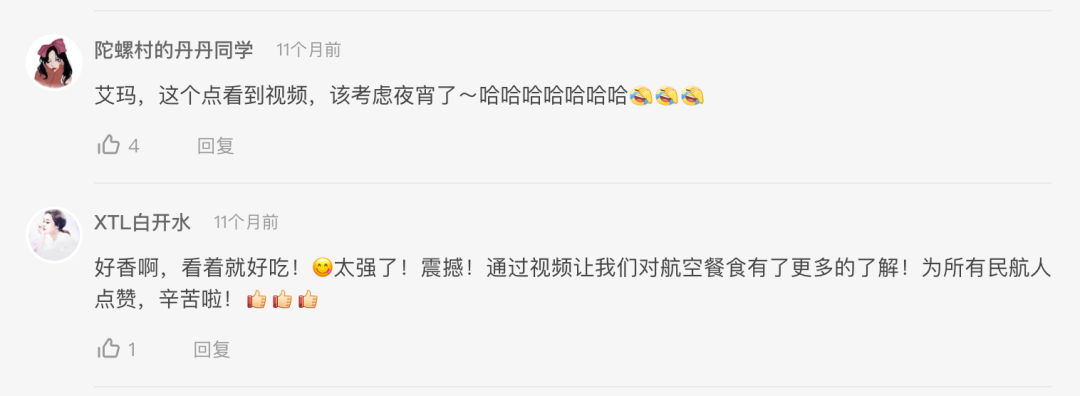 这条视频,在粉丝中为航空餐食拉了不少信任度和好感度。