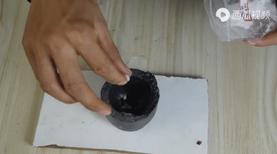 倒出上层废液,依稀能够看到烧杯底部有一层潮湿的黑色沉淀物,撒入助熔的高迪粉,用喷枪持续加热。