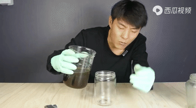 步骤三:将溶液反复过滤至没有杂质。番茄超级蛋用棉花和漏斗制作成了简单过滤器,目的是把溶液中的黄金分离出来。
