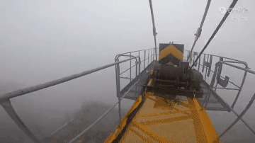 伴随着百米高空的除了上下的繁琐,还有让塔吊司机头疼的风雨。今年8月,工地突然下雨。脚下的建筑像是在云海中长出,于野戏称自己是在建设天庭。
