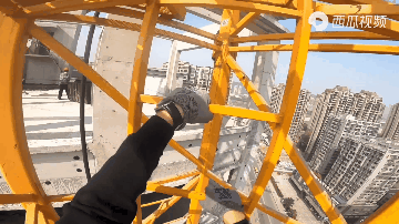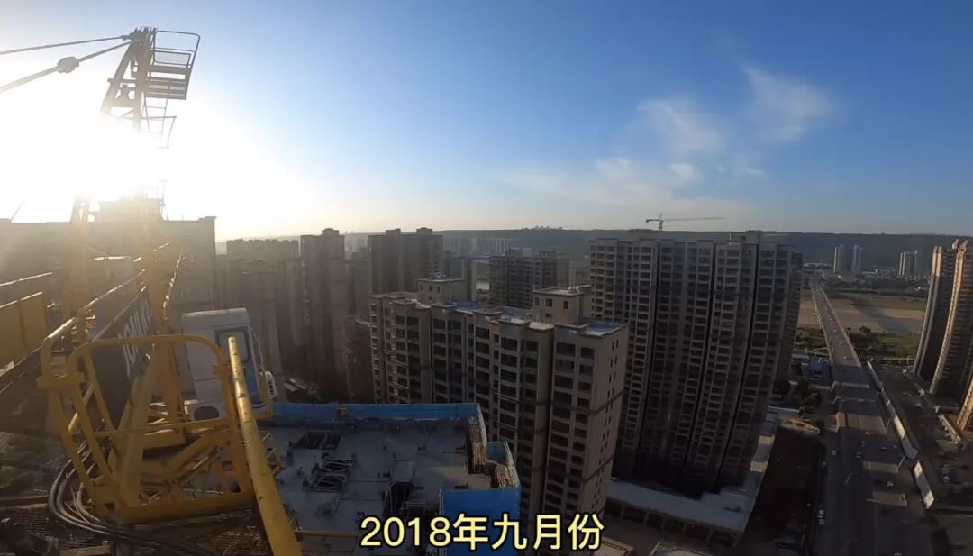在2020年9月的一支视频里,于野站在塔吊顶端眺望远处两栋已建成的商品房。他向大家介绍,两栋楼里一共有376套房,是他花了过去两年时间,一层一层吊起来的。