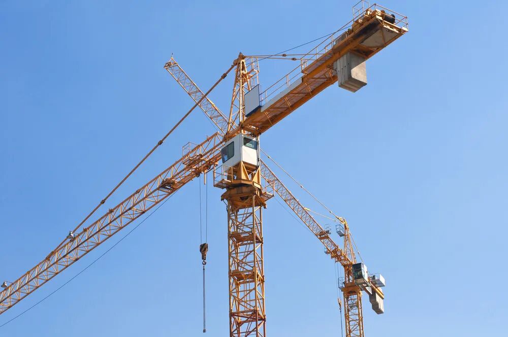 塔吊,一种高层建筑工地中不可或缺的设备,用于吊起难以人工搬运的工程材料。橙黄色十字架形状,高度随着施工楼层的升高而不断抬升,一般比顶楼高出20米左右。