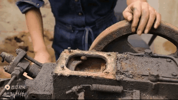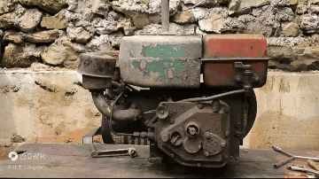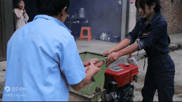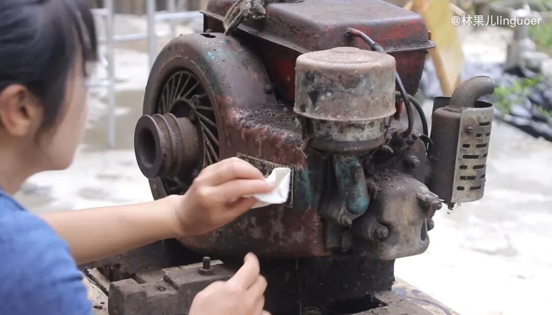 视频里,因打红薯粉的柴油机罢工,大舅拜托林果儿维修。只见她从堆垃圾的角落,找到这个锈迹斑斑的机器。