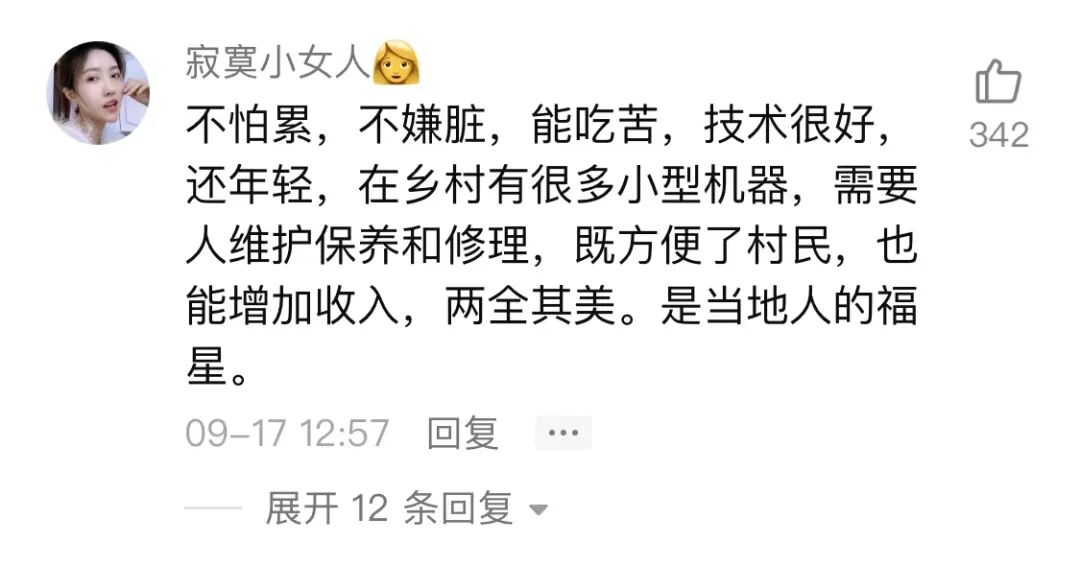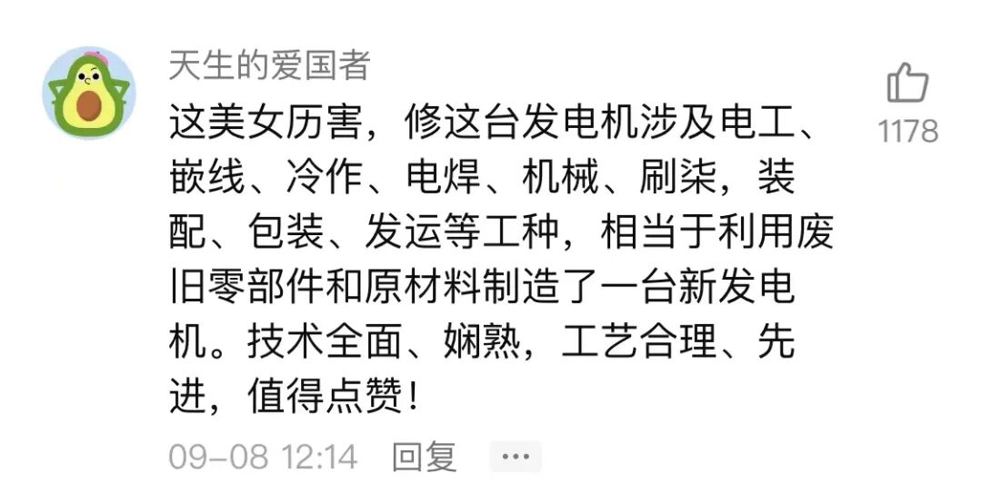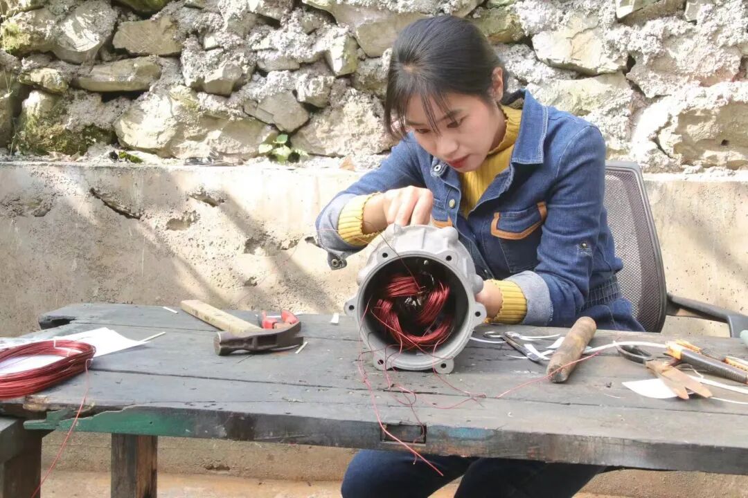 除了柴油机,林果儿还维修过包工头的搅拌机、独居老人的水泵、邻居家的发电机……她因此被网友戏称为“承包全村机电维修的女人”。