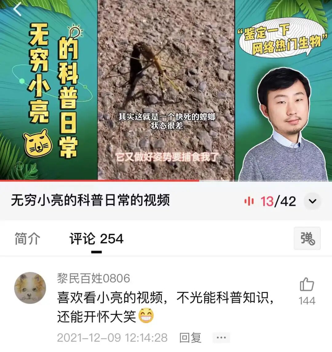一位粉丝评价小亮的视频:“言简意赅 又不失幽默,讲的明明白白,即使小学没毕业的人也会爱上科普。”