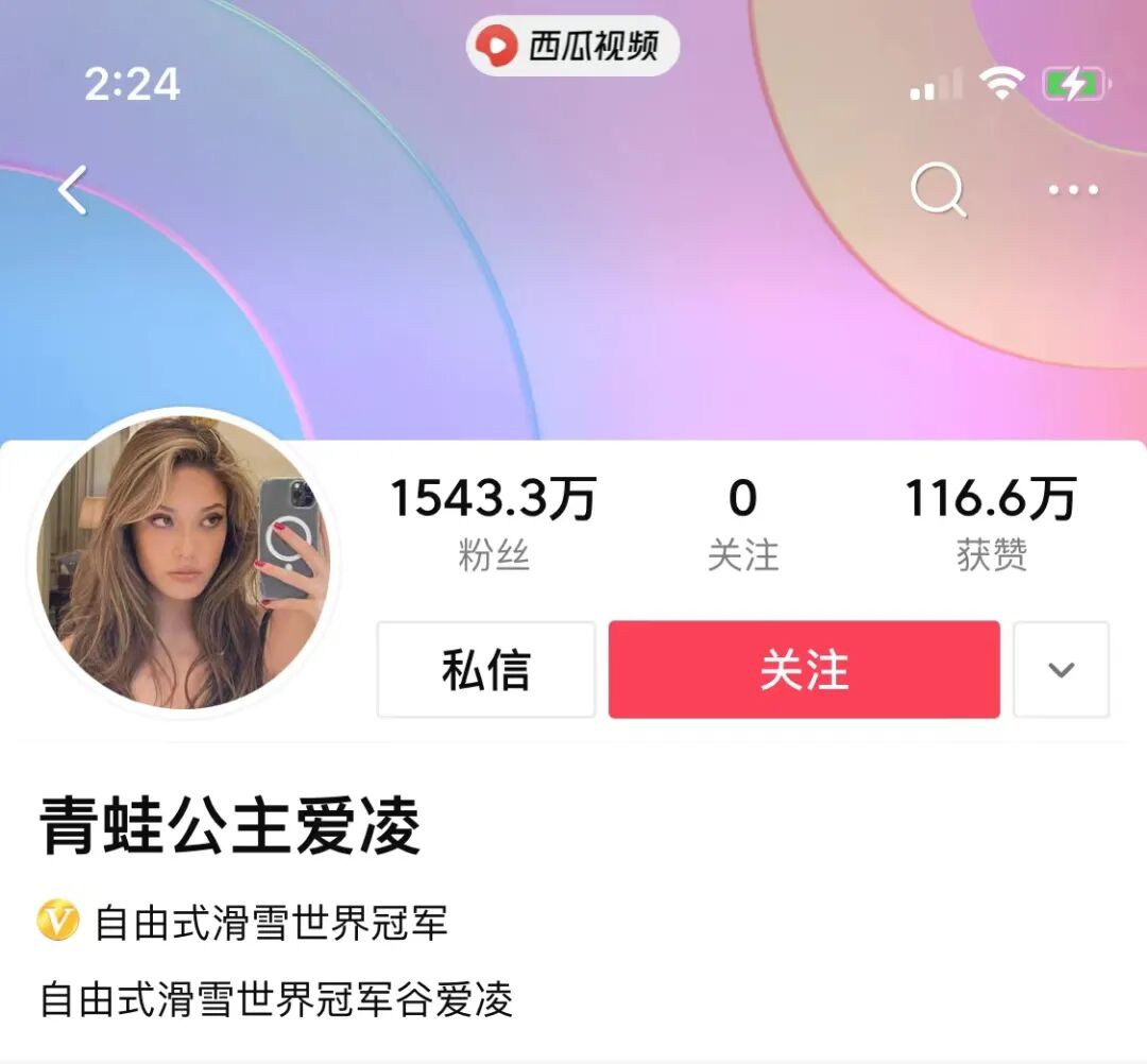 2月8日,西瓜视频创作人@青蛙公主爱凌 (谷爱凌) 更新了一条作品