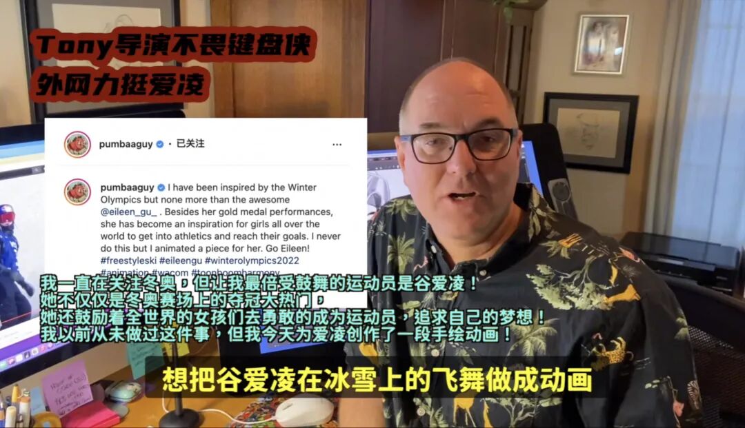 谷爱凌出色的表现,吸引了西瓜视频创作人@花木兰导演Tony 的注意。