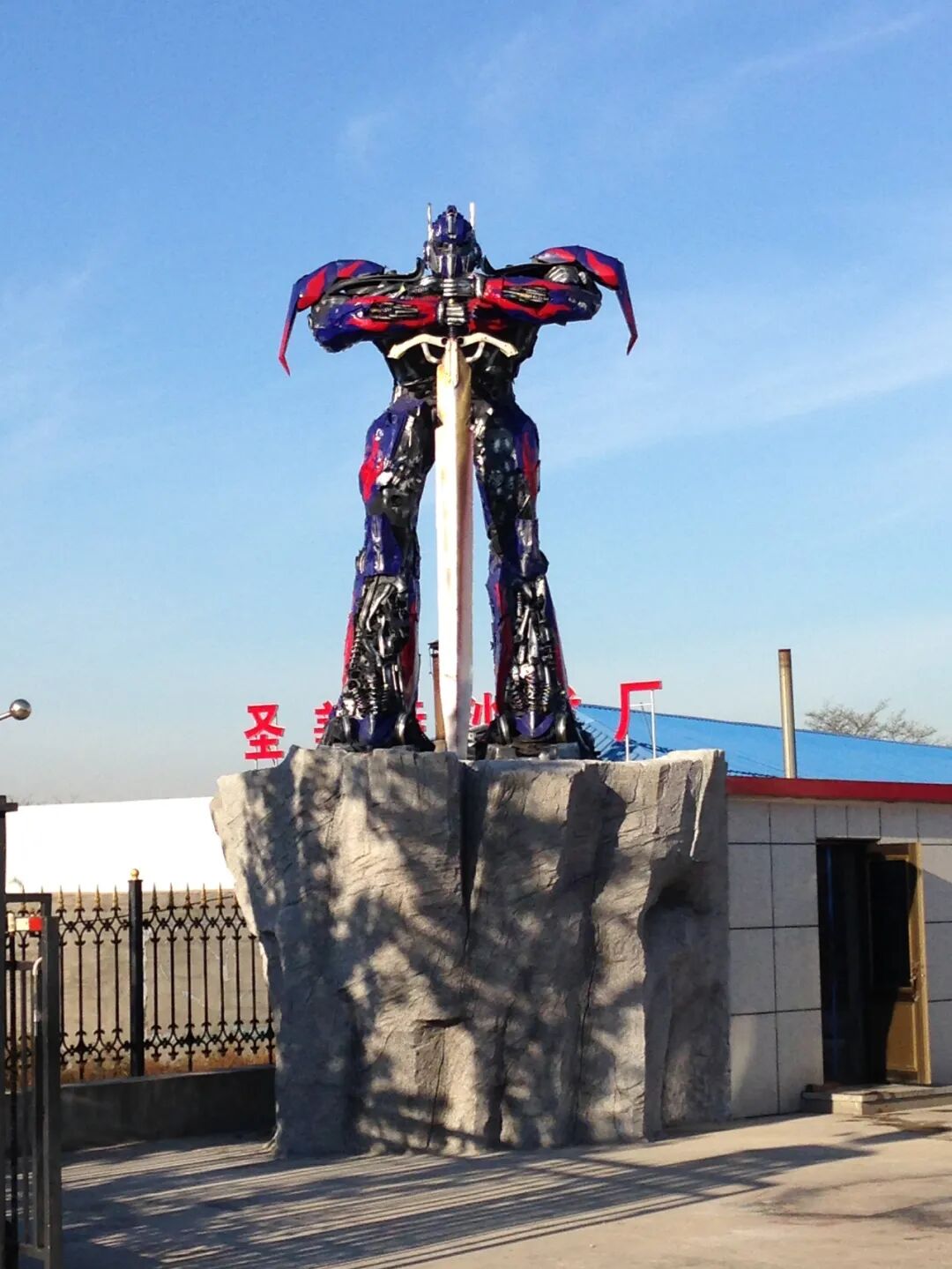 他以擎天柱为原型设计整体框架,一有时间就扎到废旧零件堆里挑选合适的材料,并自学电焊、喷涂,用两年时间制作出了一个重3.2吨、高6米的超大号汽车人“手办”。
