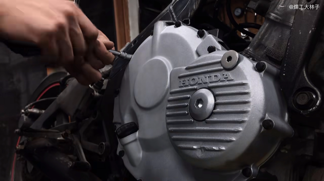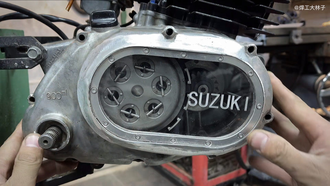 因为不是职业的修车师傅,大林子走过很多弯路,经常是边改边摸索。在改装铃木AX100时,他发现发动机内部构造很漂亮,决定将原本封闭的边盖改装成透明玻璃。