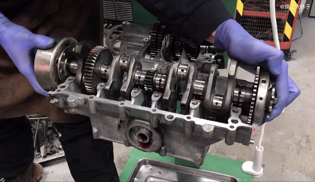 “3缸气门的颜色和其他气门颜色明显不同,说明这个缸很长时间都没有干活了”;“4缸的连杆轴瓦已经被磨成了片,真是意想不到的刺激”;“凸轮轴有点磨损但是不耽误使用”……大林子边拆边查边讲解,让粉丝get到和他一起“拆盲盒”的乐趣。