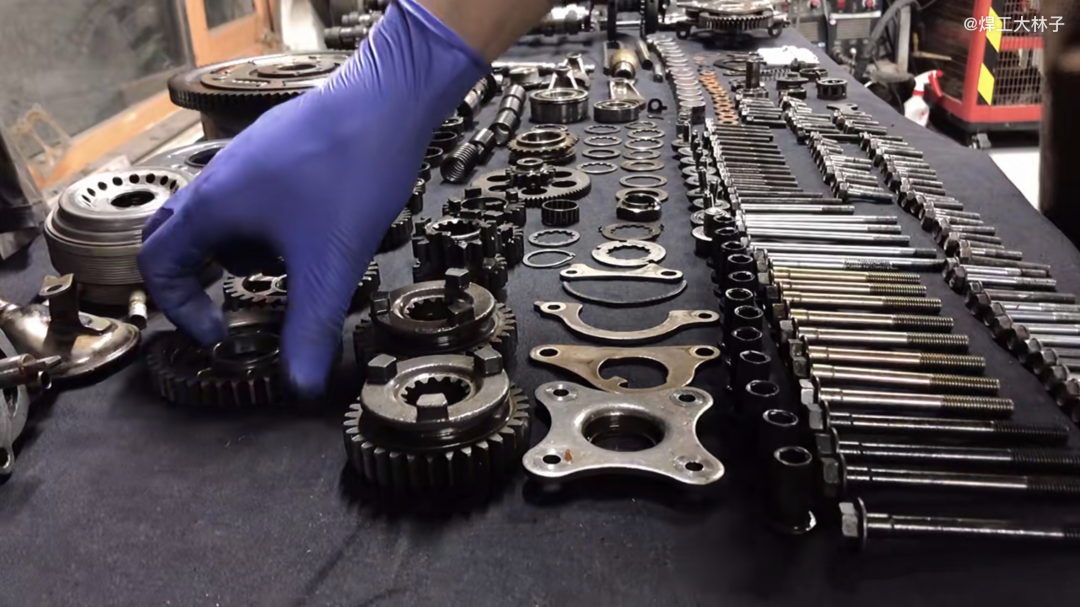 为了避免发生这位粉丝担心的情况,大林子把全面拆解完成的发动机零件,井然有序地摆在操作台上,画面极度舒适,强迫症看了都直呼内行。他还网购了一本原厂维修手册,严格按照详细的安装步骤,一板一眼地复原。