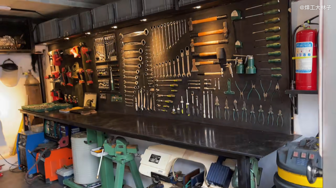 装修车库让大林子付出了不少心血。刮大白,铺瓷砖,为修车工具“量身订制”置物架,这些都是基本操作。最秀的是,车库里的车床铣床都是大林子四处搜刮到手,亲自修复翻新的。甚至还有不少趁手的大型工具,完全是他自己制作的。