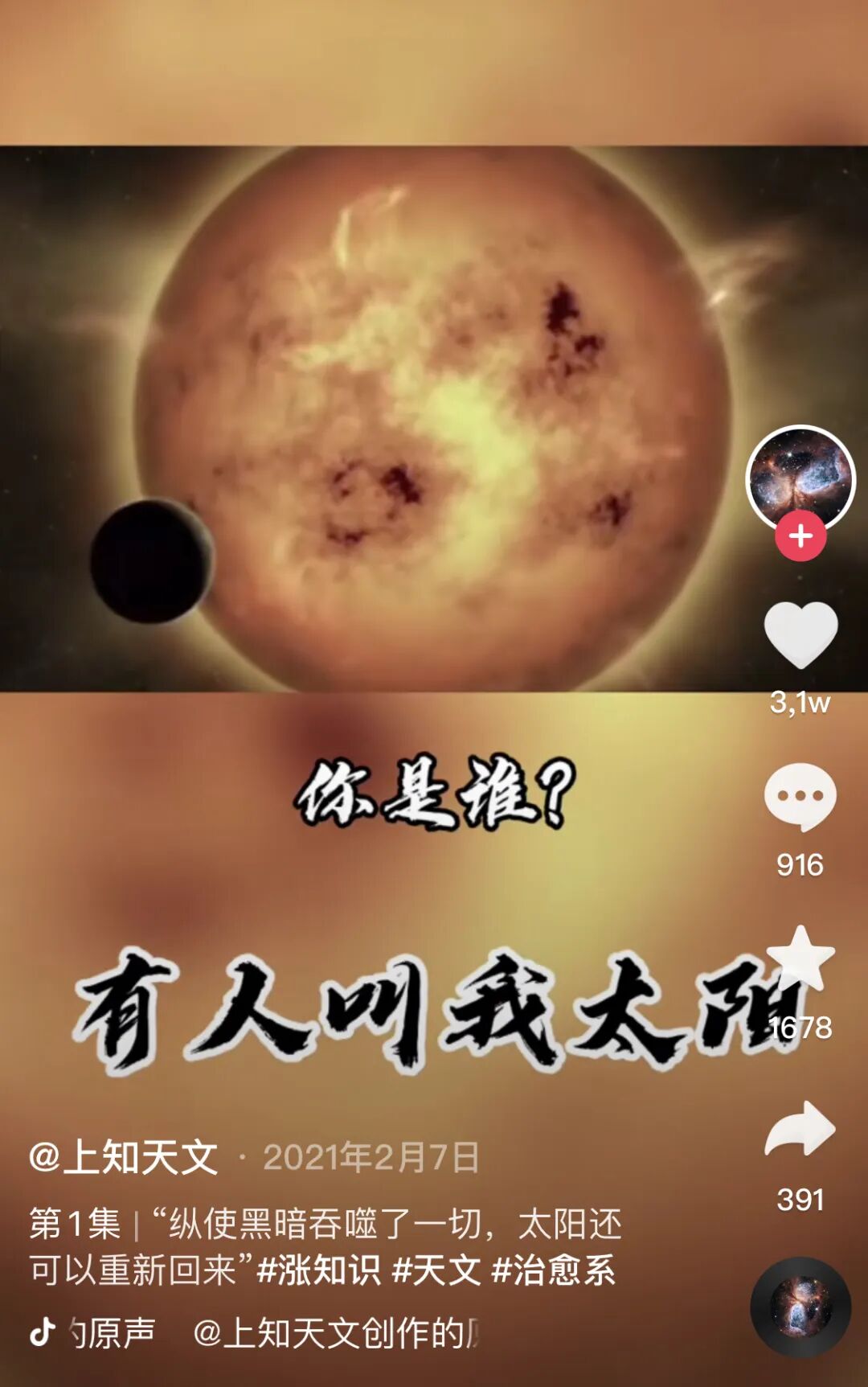 这支年轻的团队也让@上知天文 在众多科普账号里显得尤为特别,感觉又在听广播剧,又在学知识。