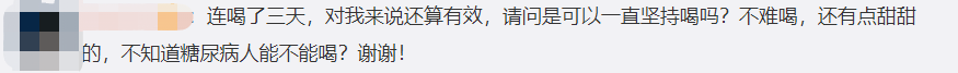 网友:连喝了三天,对我来说还算有效,请问是可以一直坚持喝吗?不难喝,还有点甜甜的,不知道糖尿病人能不能喝?谢谢!