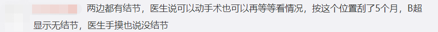 网友:两边都有结节,医生说可以动手术也可以再等等看情况,按这个位置刮了5个月,B超显示无结节,医生手摸也说没结节。