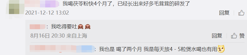 网友A:我喝茯苓粉快4个月了,已经长出来好多毛茸茸的碎发了。