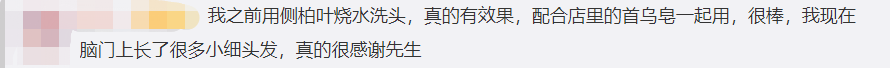 网友:我之前用侧柏叶烧水洗头,真的有效果,配合店里的首乌皂一起用,很棒,我现在脑门上长了很多小细头发,真的很感谢先生。