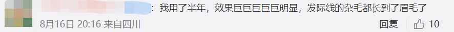 网友:我用了半年,效果巨巨巨巨巨明显,发际线的杂毛都长到了眉毛了。