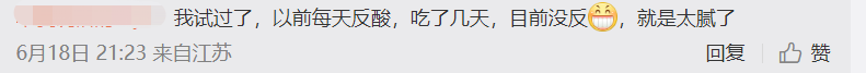 网友:我试过了,以前每天反酸,吃了几天,目前没反,就是太腻了。