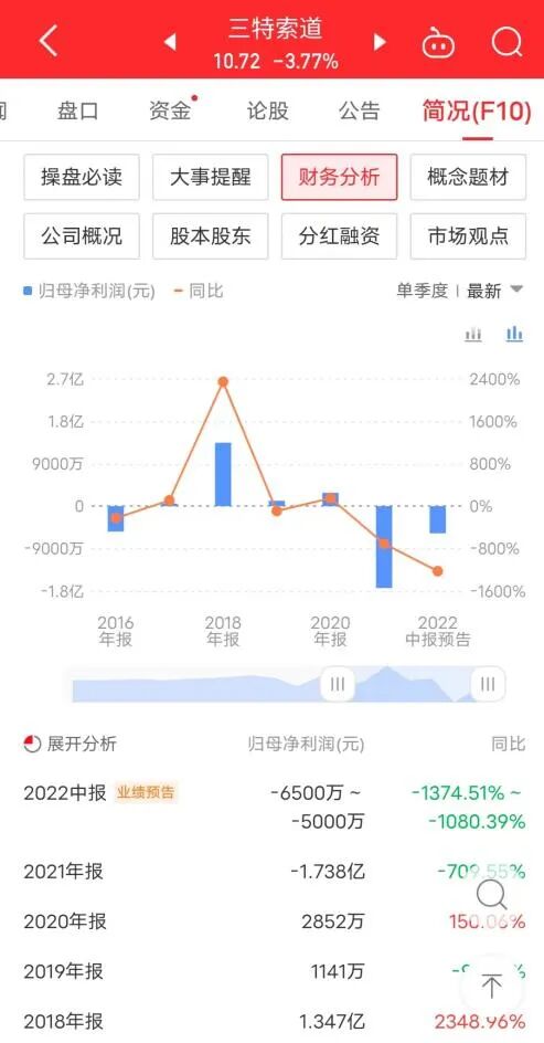 2016年-2017年,三特索道净利润分别是-5394万元、550万元,不是亏损就是微利。2018年,三特索道因出售资产而利润激增23倍,净利润达到1.35亿元,可卖完资产之后,2021年又回到了亏损的境地。