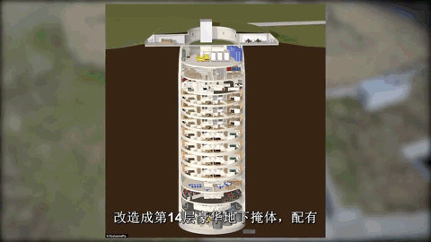 2020年,有个外网网红通过视频方式介绍他在“末日堡垒”的见闻。据说这座堡垒是上世纪60年代的核爆炸实验地,后被弃用。一个富豪把这片空地改造成14层的豪华地下楼盘。