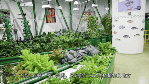 负四层有大量压缩食物储藏,里面还有一个温室,可以种植蔬果。还有一个养鱼池,鱼的粪便滋养植入,植物收割可以喂鱼,形成了一个简单的闭环生态系统。