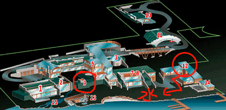 这栋豪宅还有一个“逃生门”,位于图12的位置,它是一个富有乡村气息的船屋。木屋下面是一条可容一条小飞艇的出水口,登上快艇可迅速消失在宽阔的华盛顿湖中。