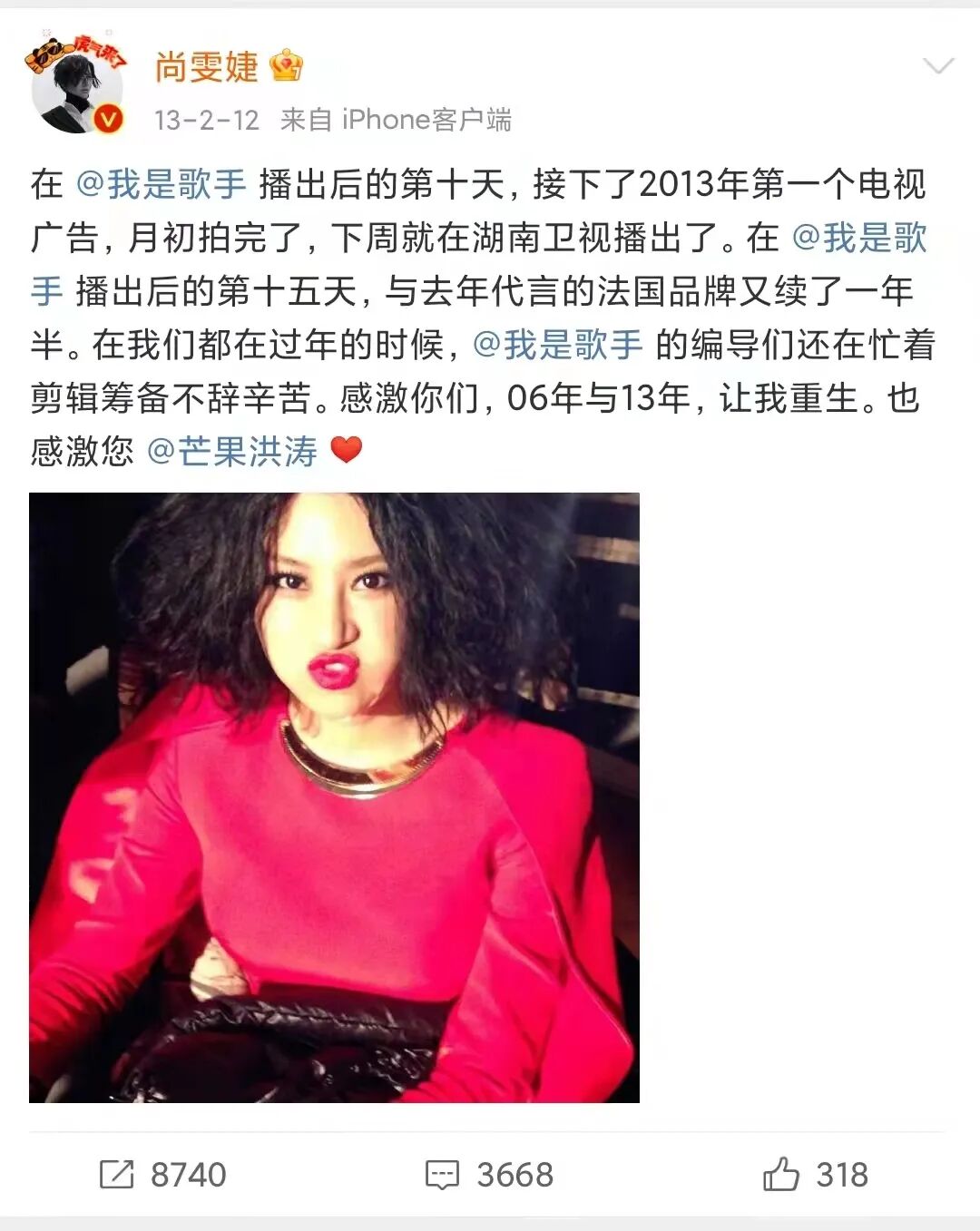 当时的华谊风头正盛,尚雯婕也借此收获了不小的关注与热度,事业也随之上了一个高度。