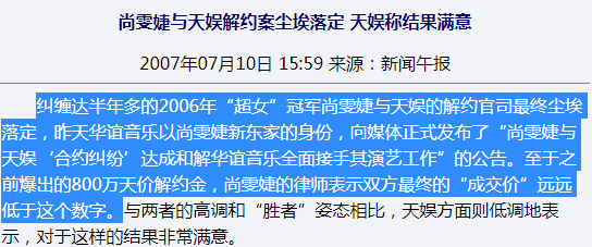后来据说是华谊替尚雯婕赔付了天娱的违约金,她才得以顺利脱身。而这之后,尚雯婕傍上了华谊这个靠山,高调签约新东家。