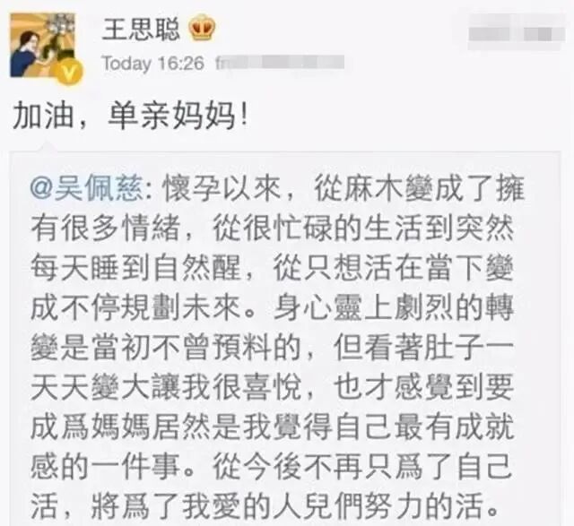 都这么说了,自然两人很快就和好了,吴佩慈也公布了怀孕的消息。