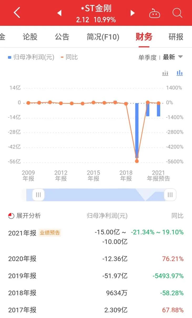 2019年-2020年,豫金刚石连续两年业绩亏损,归母净利润合计巨亏超64亿元。业绩预告显示,2021年,豫金刚石预计净利润为亏损10亿-15亿元。若经审计的2021年期末净资产为负值,或者追溯重述后2021年度净资产为负值,根据相关规定,豫金刚石股票将被终止上市。
