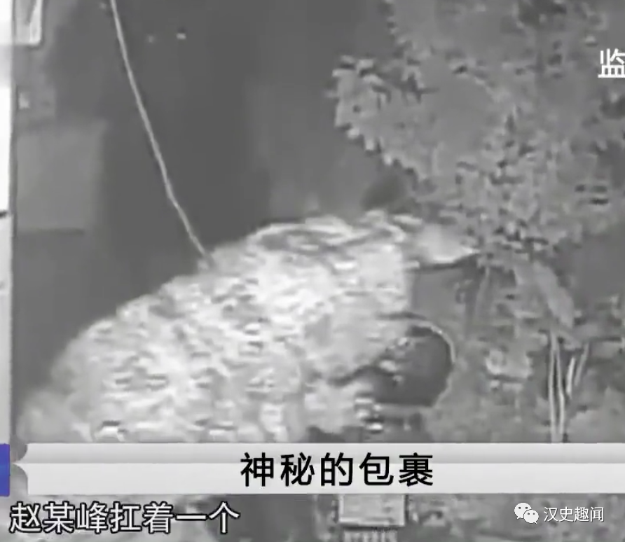 到了晚上8点40多分,赵某峰背着一个人形的东西出来了,像是用床单包裹着一个人。