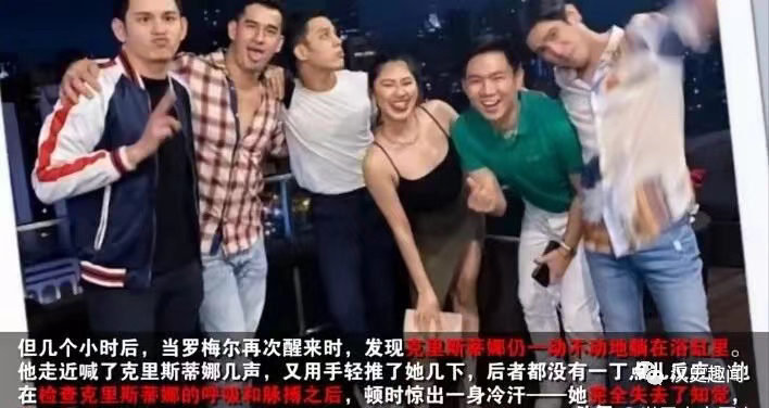 有一个小伙伴回忆,他说九点多的时候,他起床上厕所,看到克里斯汀在浴池里,是光着身子的,他就给克里斯汀扔过一个毛巾过去。
