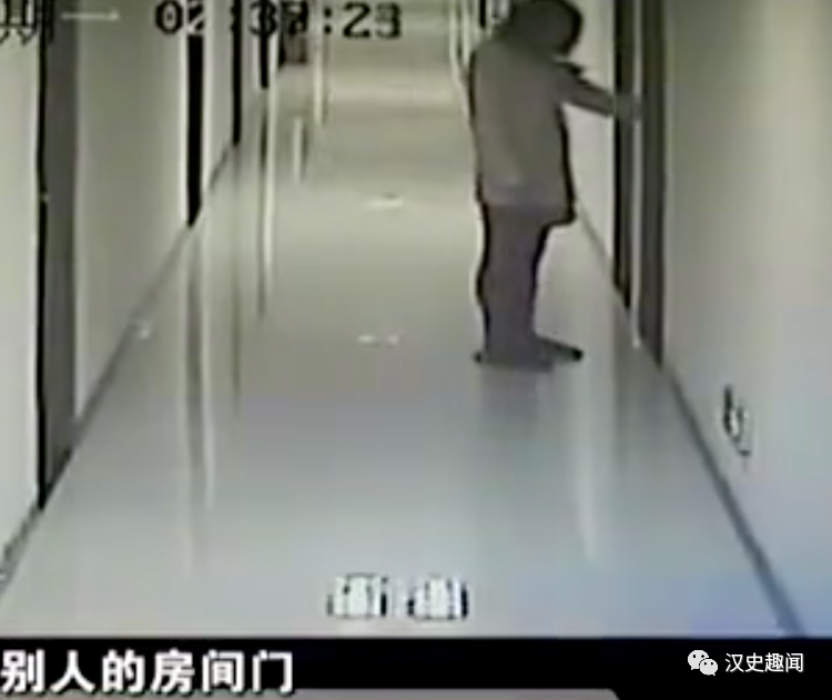 给人的感觉,她像是喝了酒一样,看上去不是很清醒,还试图打开别人的房间,想要进去。