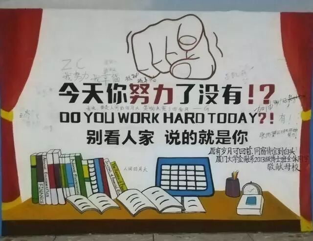 “今天,你努力了没有!?”问你呢,看涂鸦的。