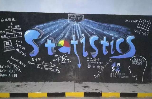 统计系的涂鸦也同样有专业特色,除了几个字母其它的都让人一头雾水。