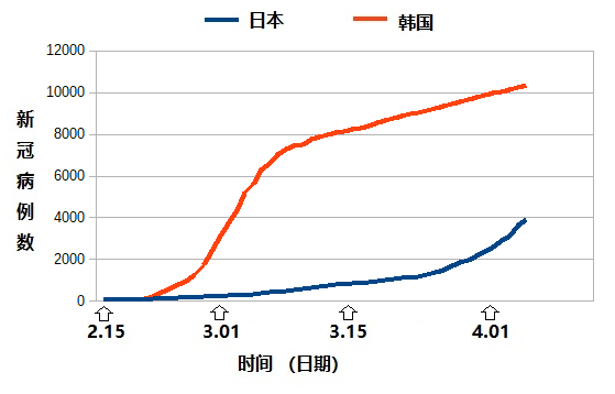 早在1月6日,日本这个人口稠密的岛国就有了第一个新冠病例。三个月后,日本全国的新冠确诊病例数接近4000人 [1]。相比于正在暴发的几个欧美大国,日本的疫情控制显得很不错。就是相比它的邻居韩国,日本无论在病例数还是死亡人数上都要低得多。