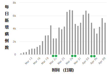 4月4月,星期六,新增病例数4933,比前一日下降一千多例