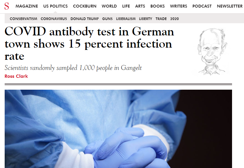 关于德国新冠抗体普查的新闻(图片来源:Spectator网页截图)
