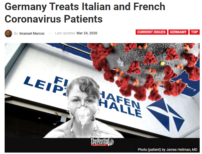 关于德国帮助意大利和法国治疗第一个病人的报道(图片来源:https://berlinspectator.com/)