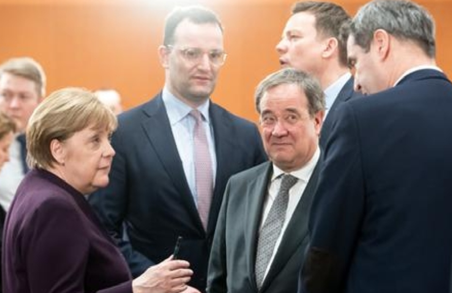 德国政坛几位关键人物在讨论新冠防疫 (图片来源:ARD电视台)