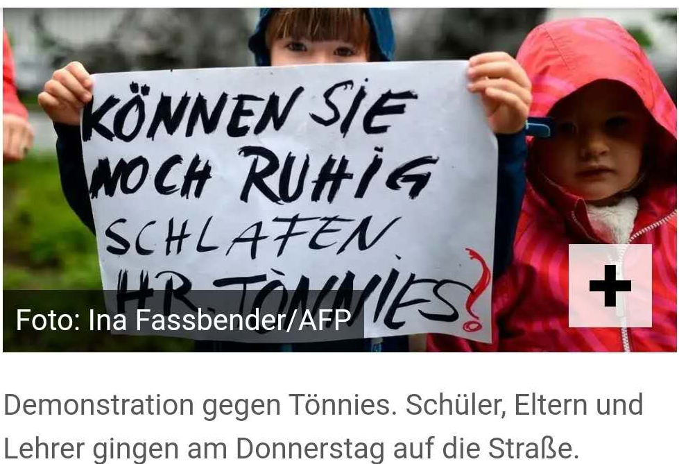 在这样的情形下,老百姓所能做的只能是从道德层面去谴责肉联厂的老板。在新冠暴发后,当地重新升级防控措施。又一次停课的老师、学生、家长走上街头示威游行,抗议肉联厂的老板通尼斯先生。其中几个儿童打了一条醒目的标语:“通尼斯先生,您能睡得安稳吗?”