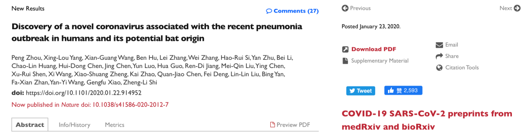 5.Zhou et al. A pneumonia outbreak associated with a new coronavirus of probable bat origin. Nature 2020,volume 579, pages270–273