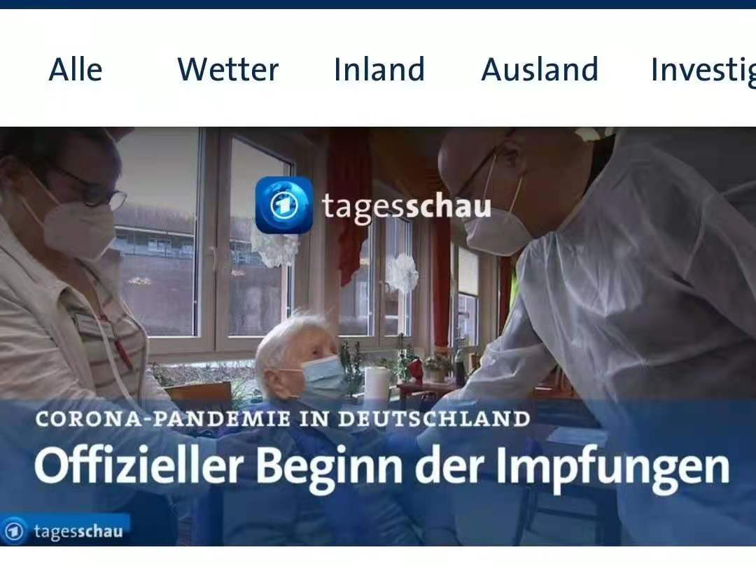 德国第一例新冠疫苗接种(图片来源:德国ARD电视台网站)