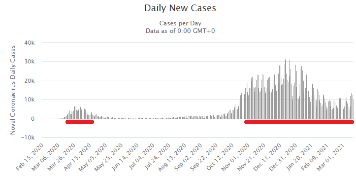虽然对德国而言,防疫措施已经严格得史无前例,但第二波疫情的控制仍难如人意。好不容易等到三月份第二波疫情趋于缓和,关闭了几个月的商业活动开始开放,但随后就迎来了第三波疫情。